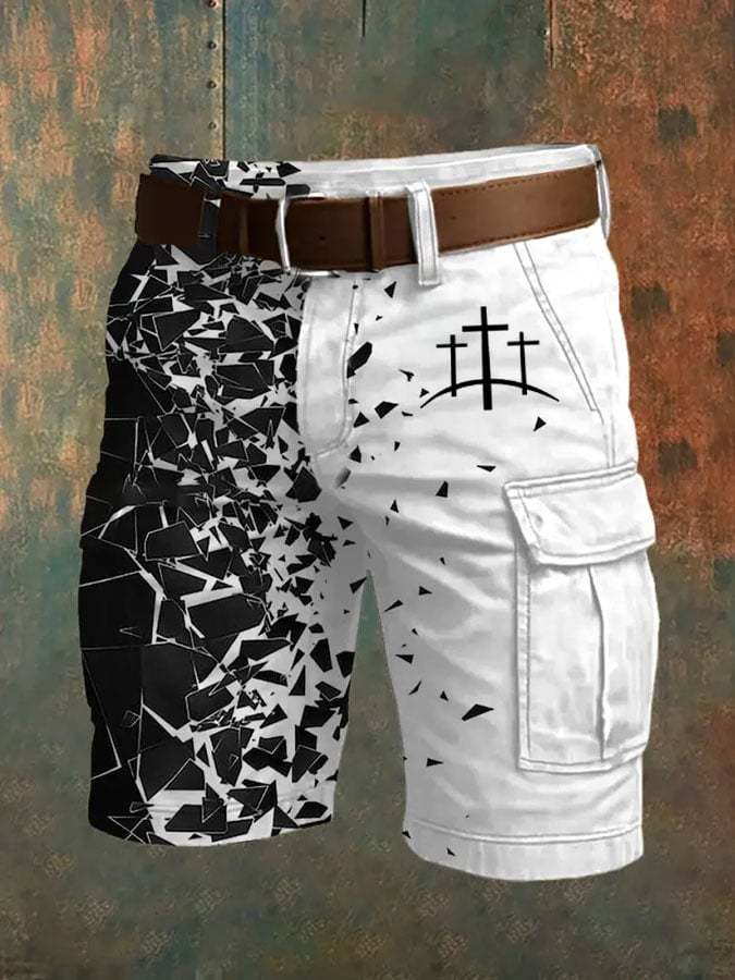 Men's Retro Faith Cross Print Multi-Pocket Cargo Shorts