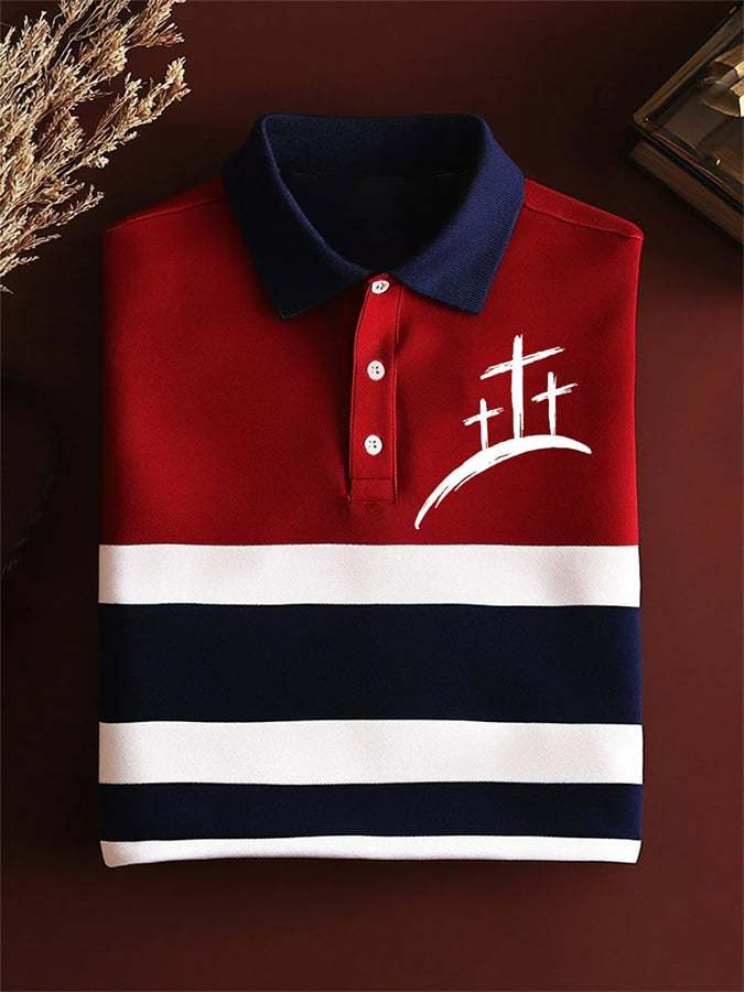 Men's Retro Faith Print Casual Polo Shirt