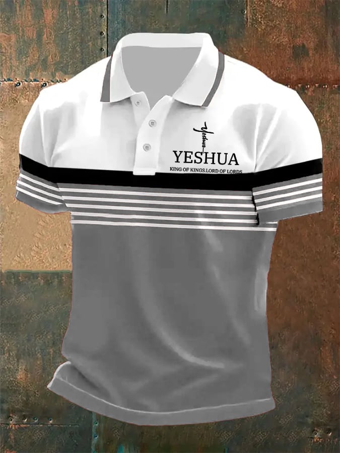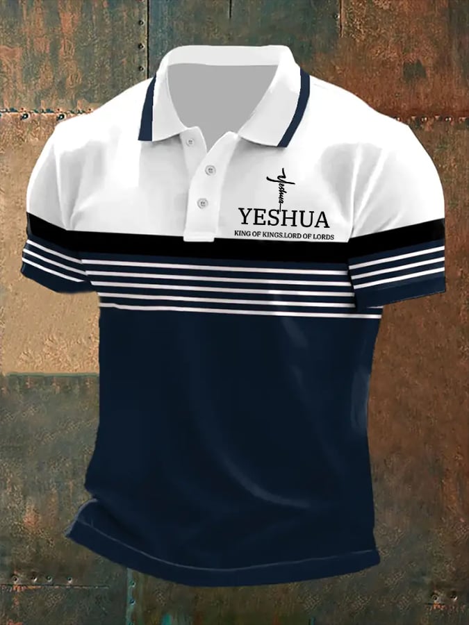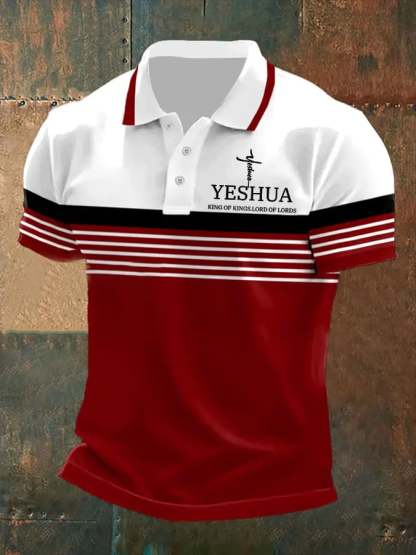 Men's Retro Faith “Yeshua King OF Kings Lord Of Lords” Casual Printed Polo Shirt