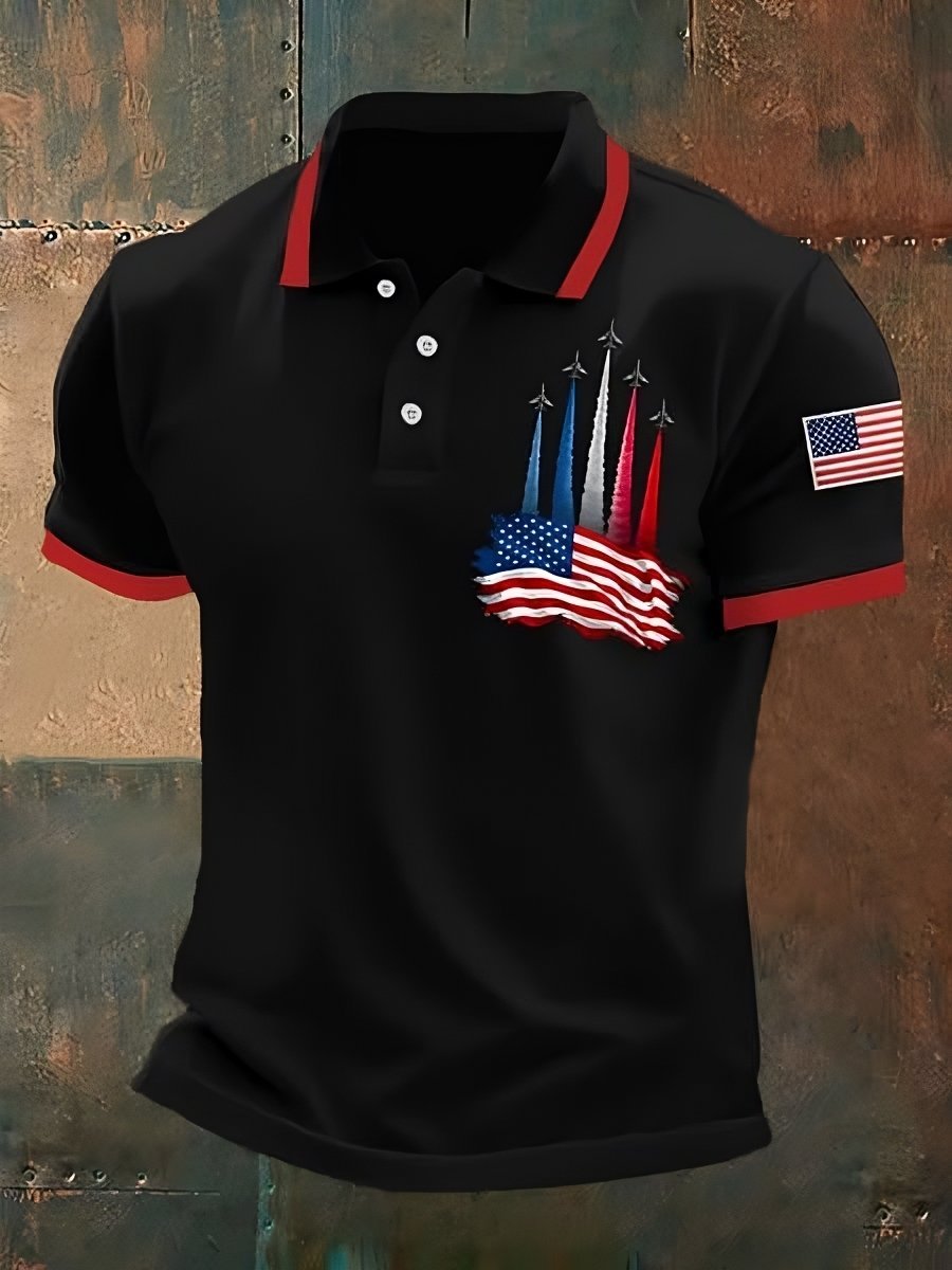 Men's Retro Independence Day Flag Print Polo Shirt