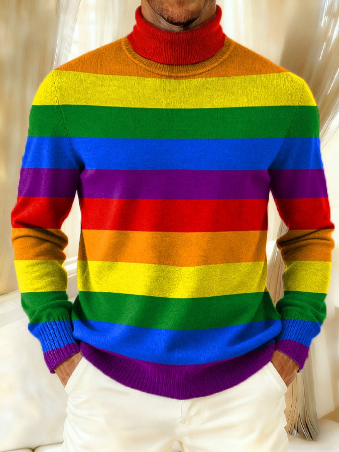 Men's Retro LGBT Print Casual Turtleneck Knitted Top