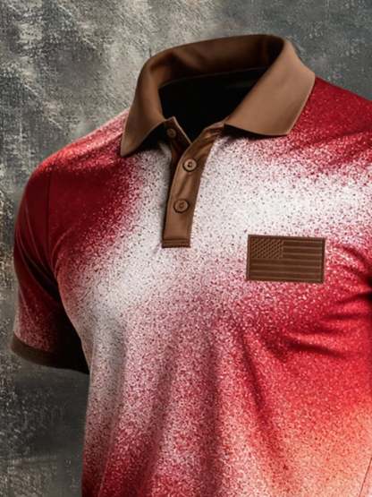 Men's Retro Patriot Color Block Polo Collar Short Sleeve