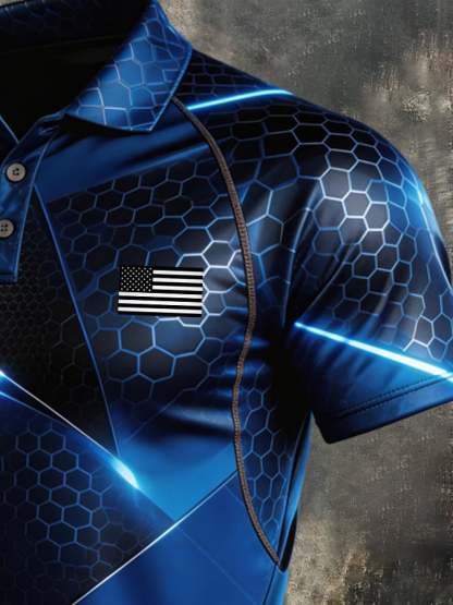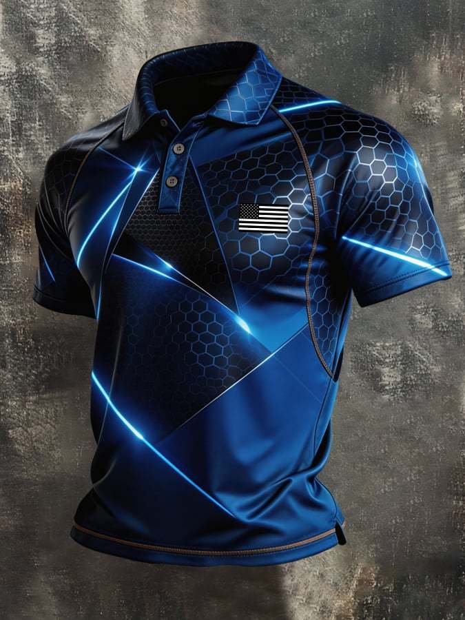 Men's Retro Patriot Color Block Polo Collar Short Sleeve