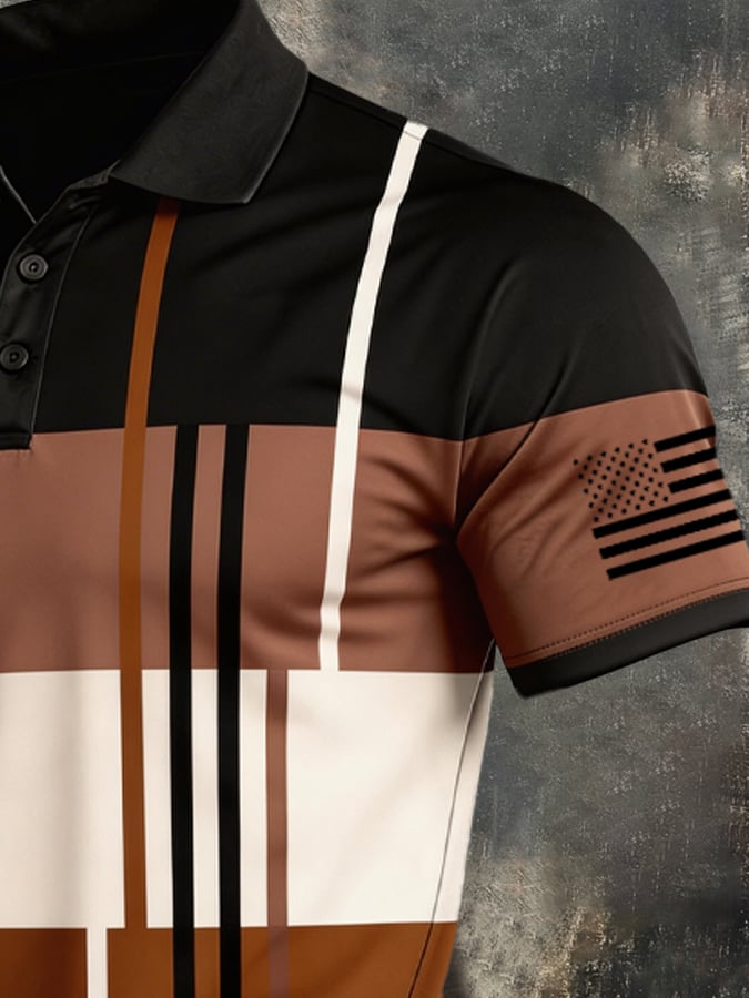 Men's Retro Patriot Color Block Polo Collar Short Sleeve