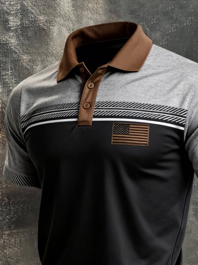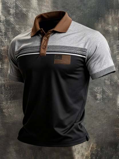 Men's Retro Patriot Color Block Polo Collar Short Sleeve
