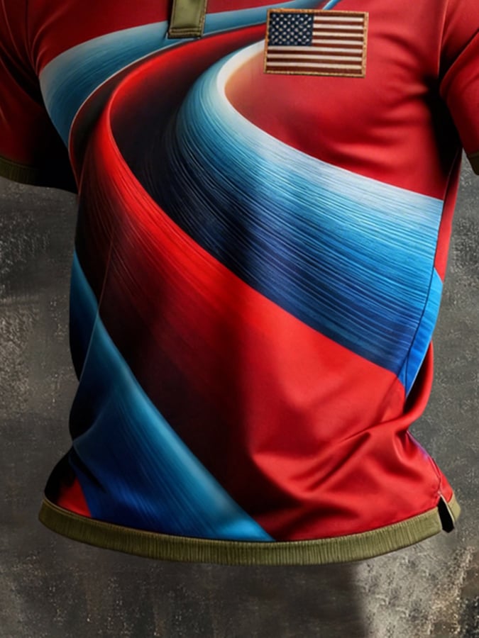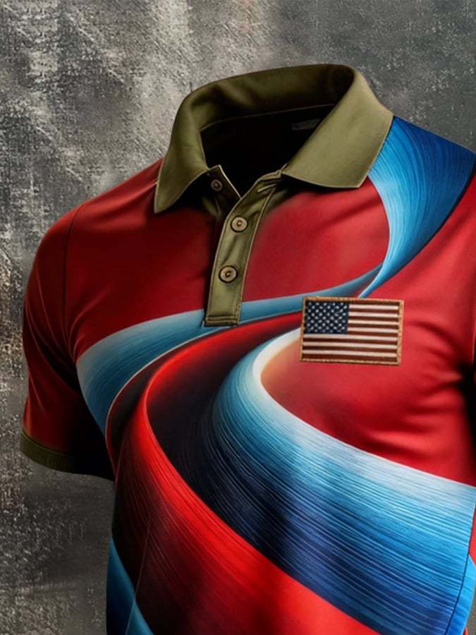 Men's Retro Patriot Color Block Polo Collar Short Sleeve