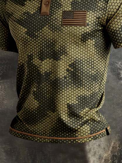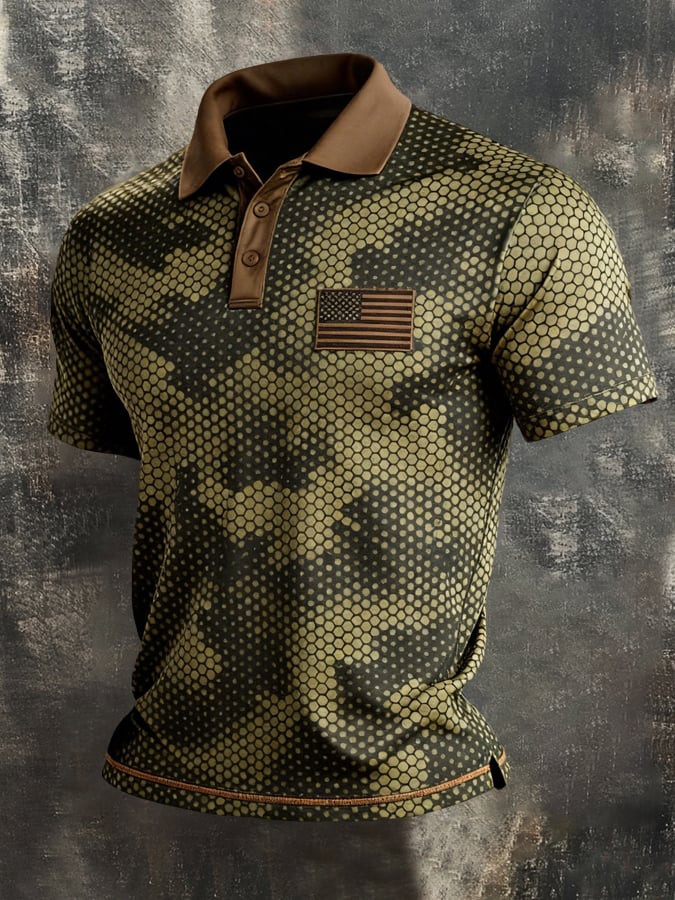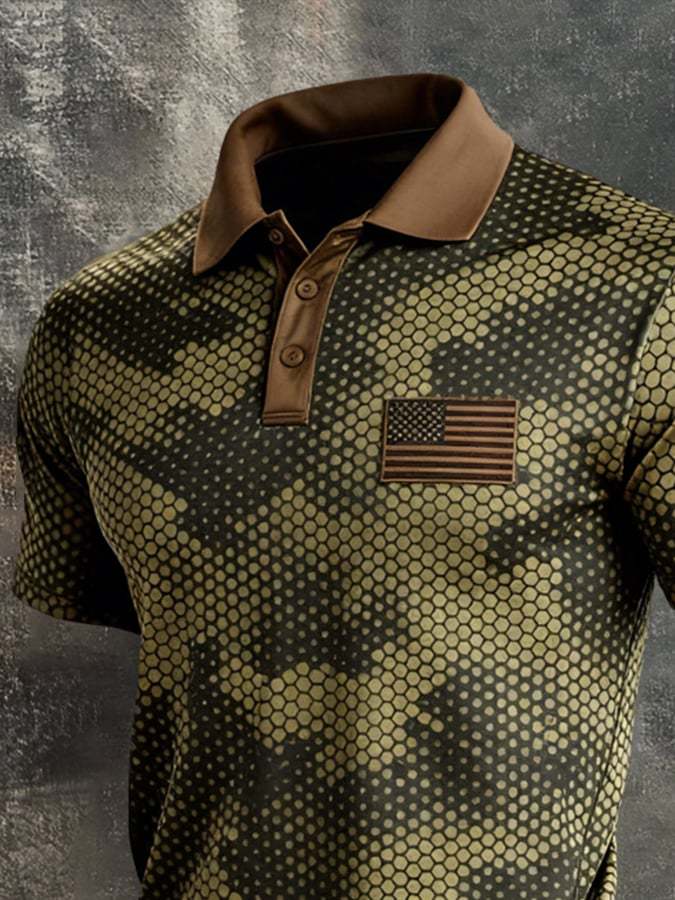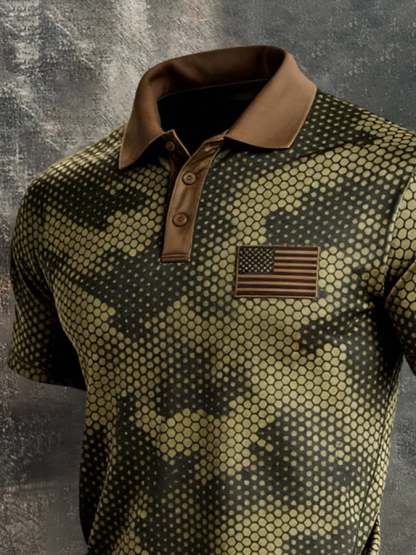 Men's Retro Patriot Color Block Polo Collar Short Sleeve