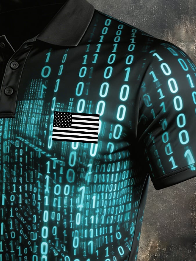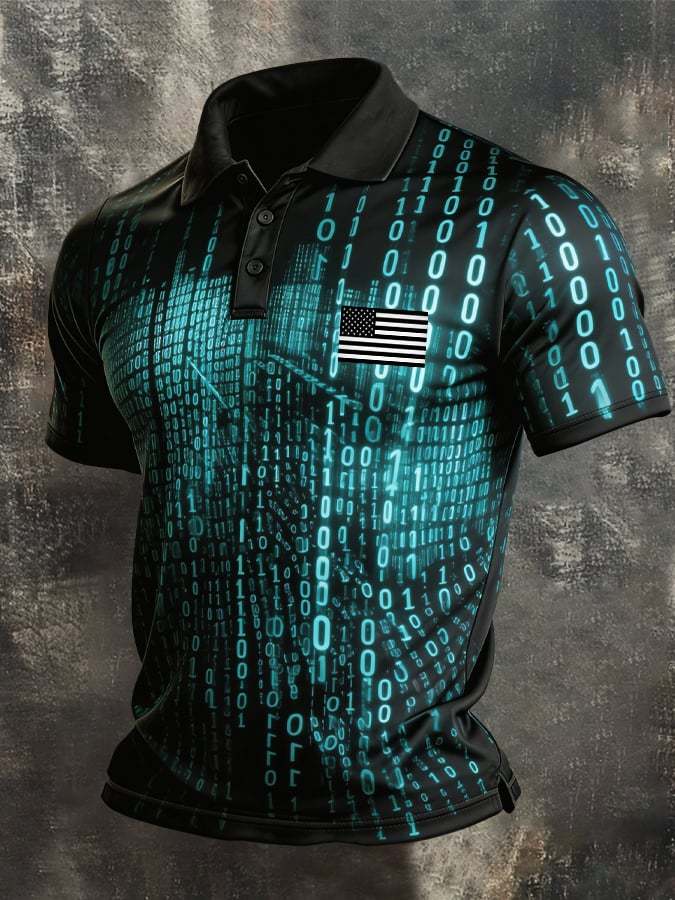 Men's Retro Patriot Color Block Polo Collar Short Sleeve