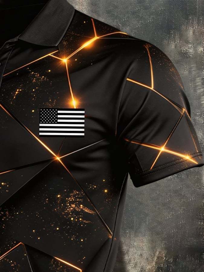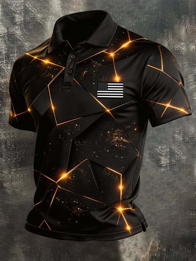 Men's Retro Patriot Color Block Polo Collar Short Sleeve