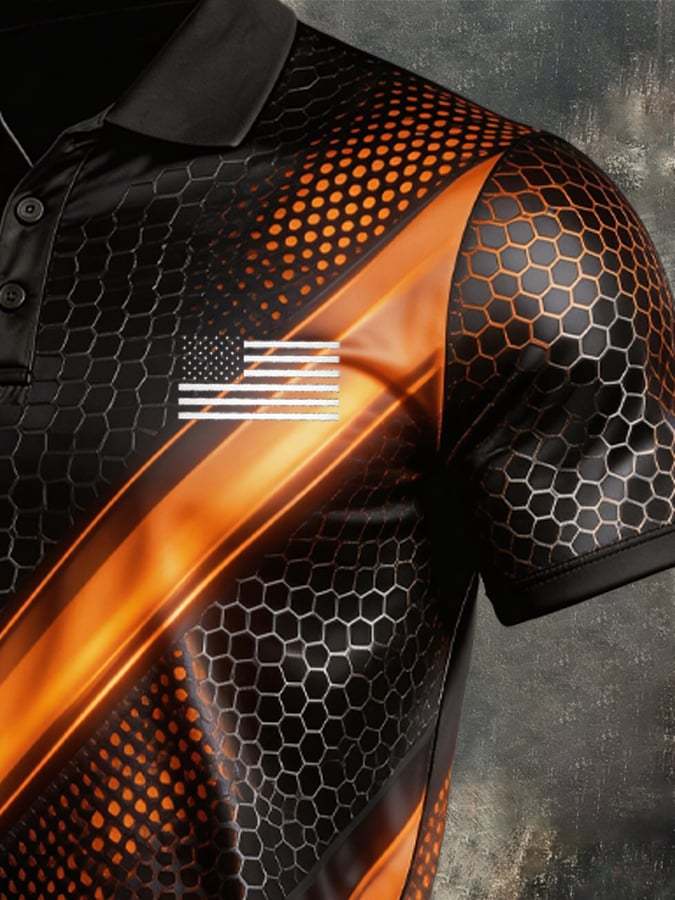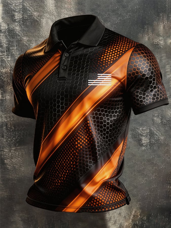 Men's Retro Patriot Color Block Polo Collar Short Sleeve