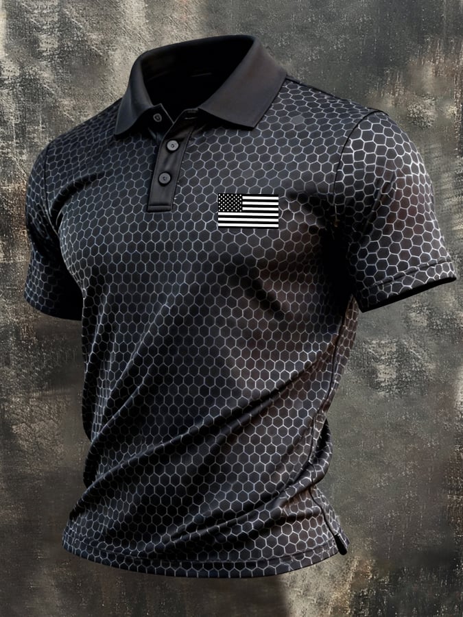 Men's Retro Patriot Color Block Polo Collar Short Sleeve
