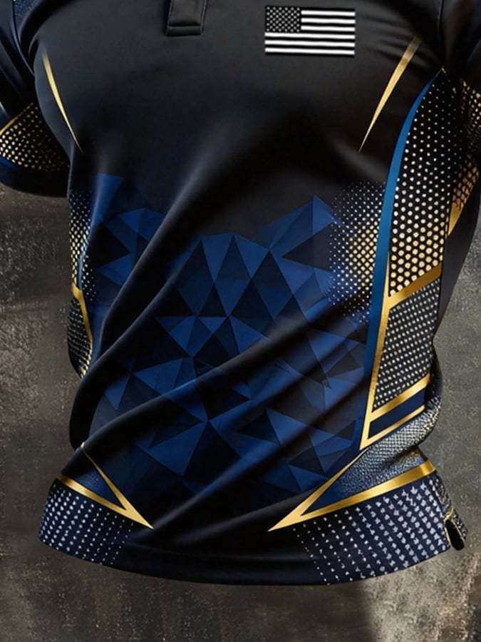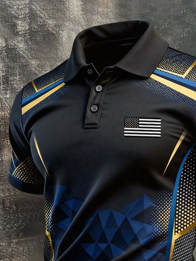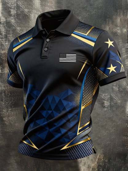 Men's Retro Patriotic Color-Block Short-Sleeve Polo Shirt