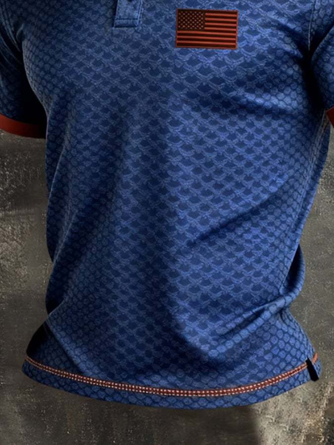 Men's Retro Patriotic Color-Block Short-Sleeve Polo Shirt