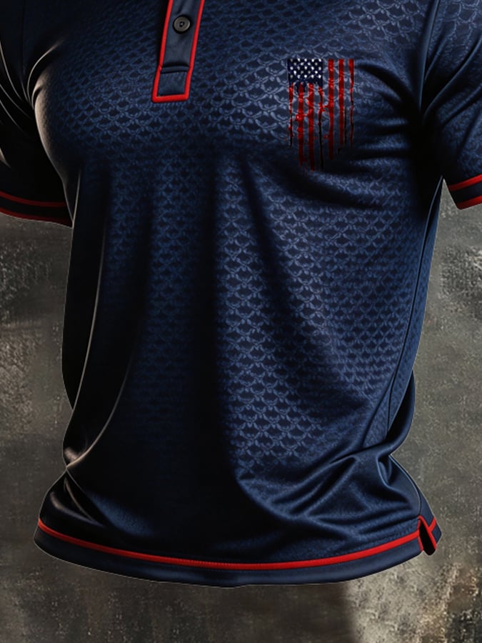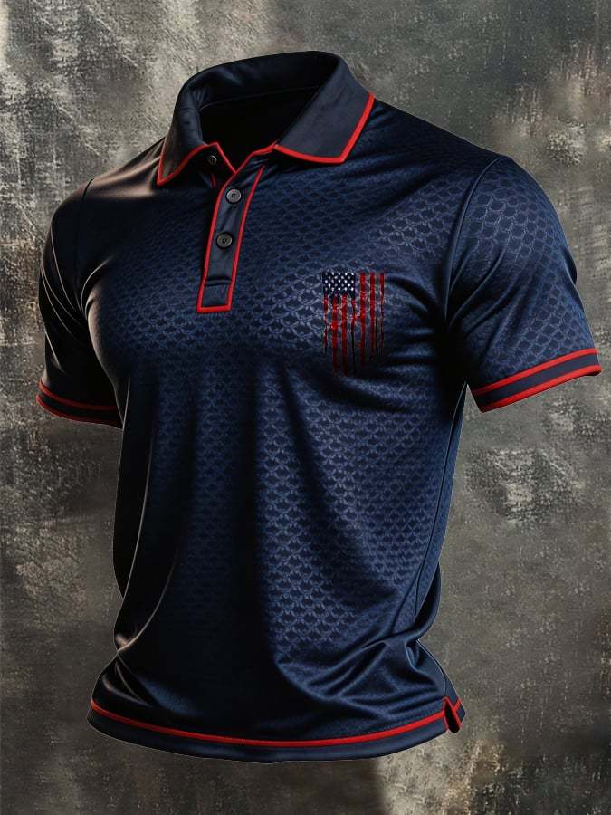 Men's Retro Patriotic Color-Block Short-Sleeve Polo Shirt