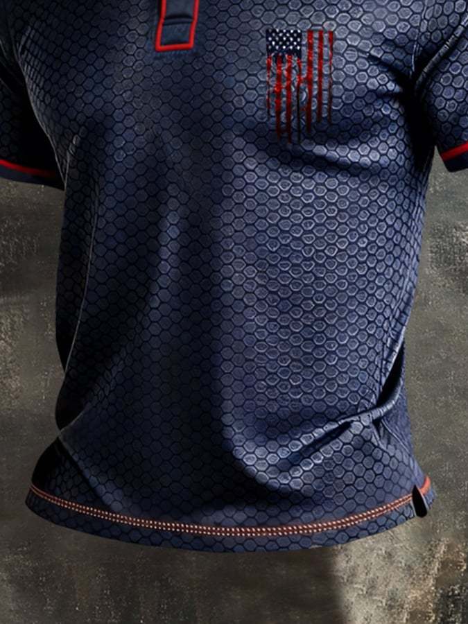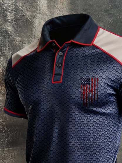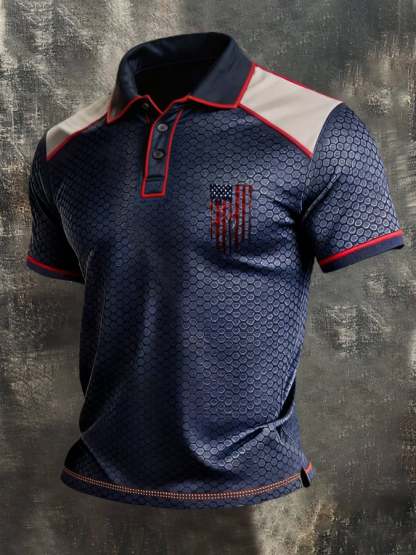Men's Retro Patriotic Color-Block Short-Sleeve Polo Shirt