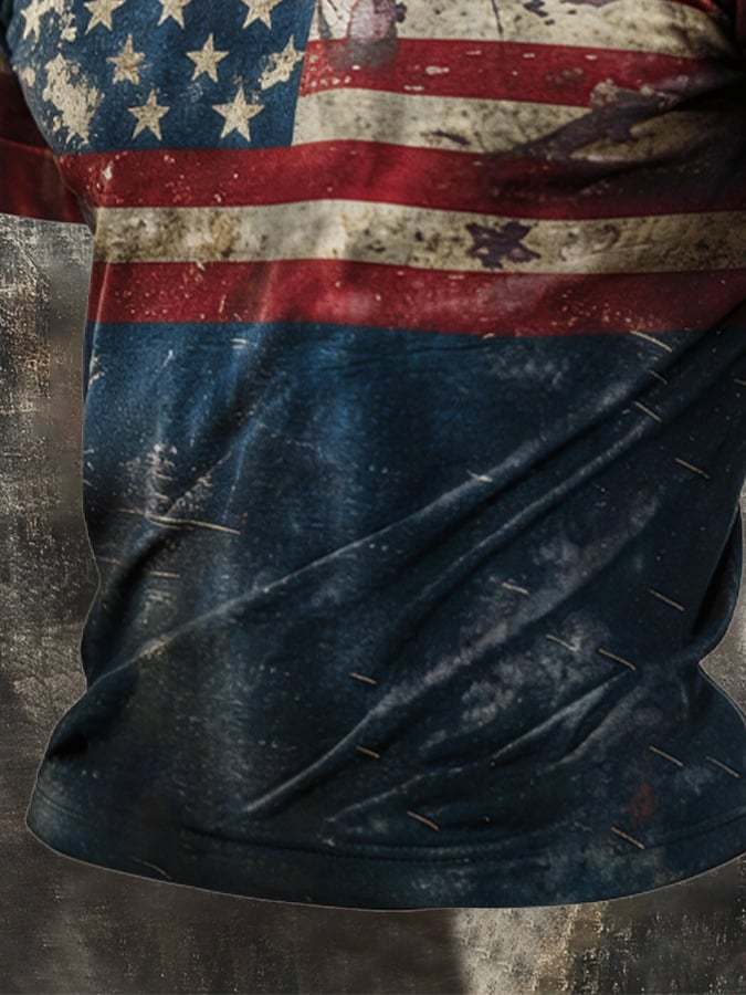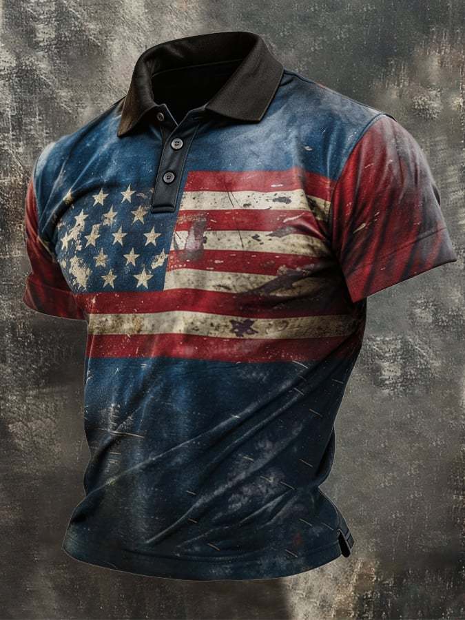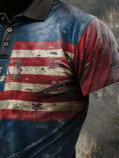 Men's Retro Patriotic Color-Block Short-Sleeve Polo Shirt