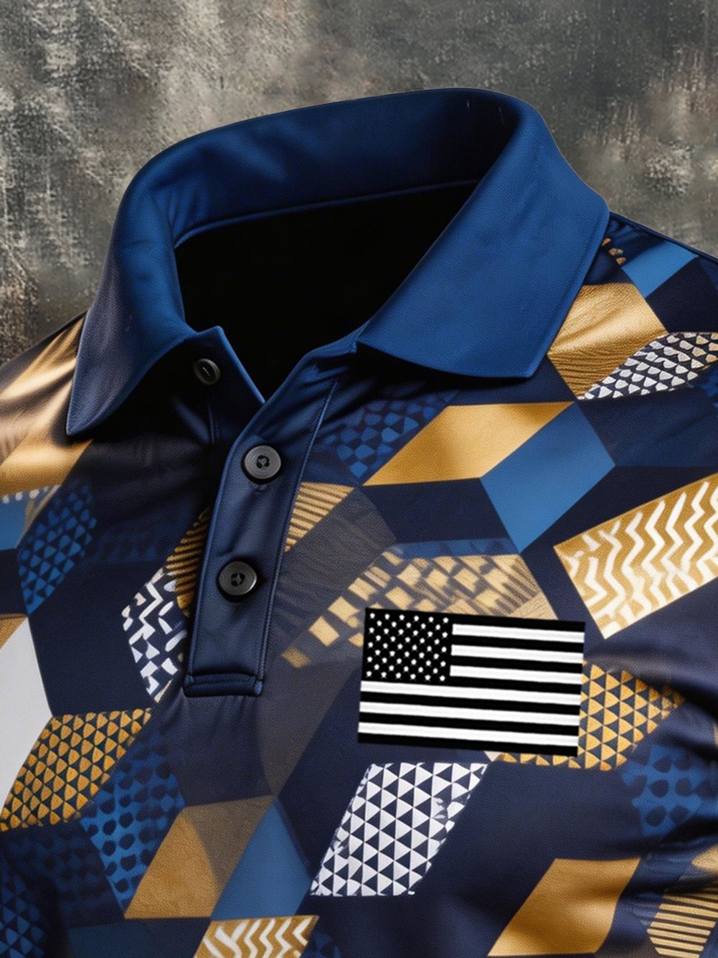 Men's Retro Patriotic Color-Block Short-Sleeve Polo Shirt
