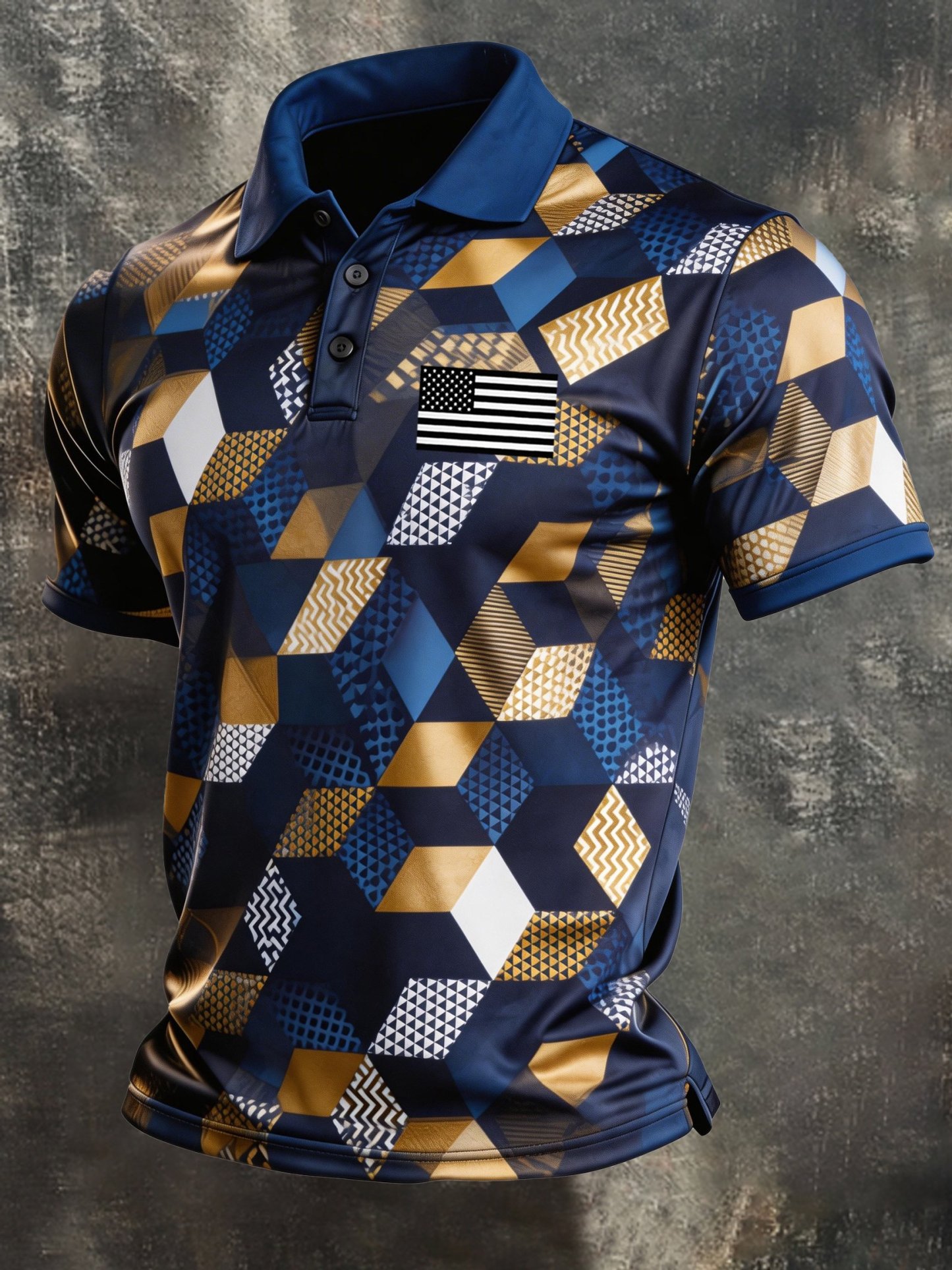 Men's Retro Patriotic Color-Block Short-Sleeve Polo Shirt – lolonb