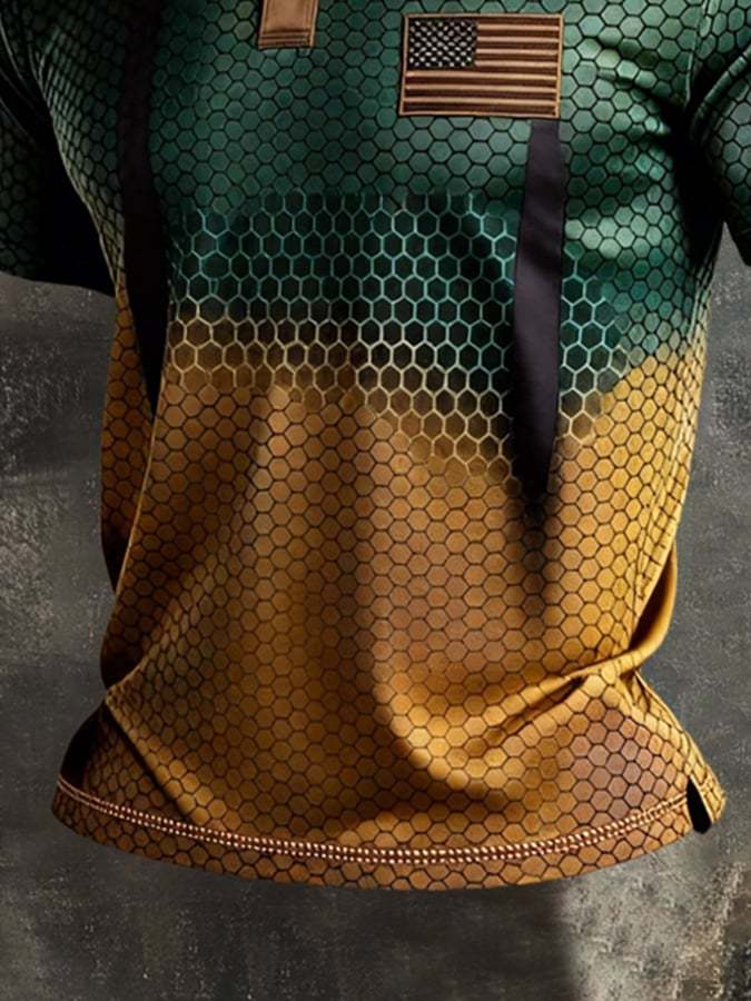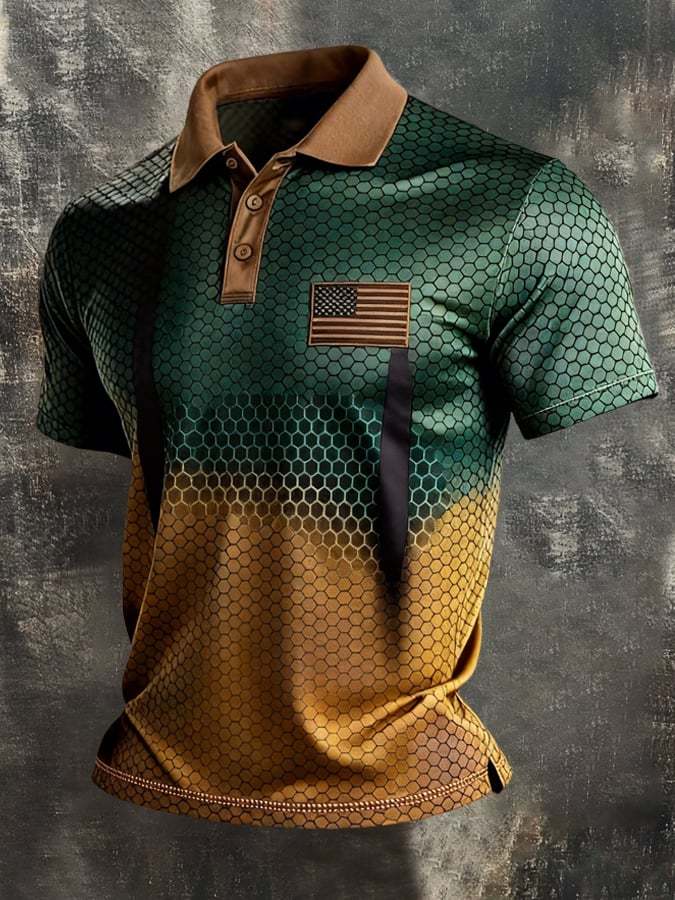 Men's Retro Patriotic Color-Block Short-Sleeve Polo Shirt – lolonb