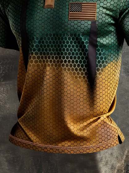 Men's Retro Patriotic Color-Block Short-Sleeve Polo Shirt