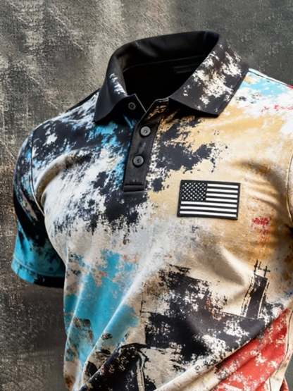 Men's Retro Patriotic Color-Block Short-Sleeve Polo Shirt
