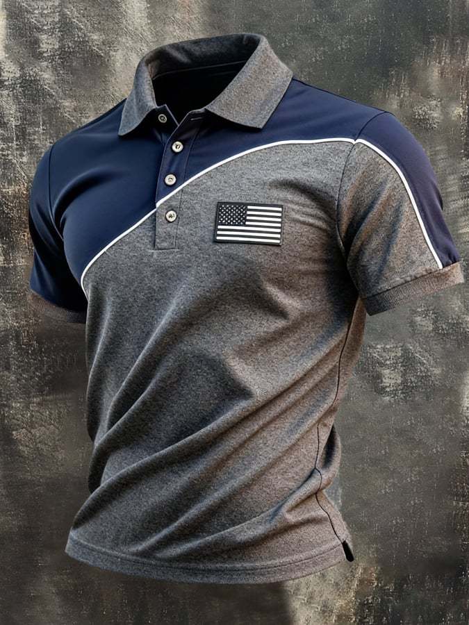 Men's Retro Patriotic Color-Block Short-Sleeve Polo Shirt – lolonb