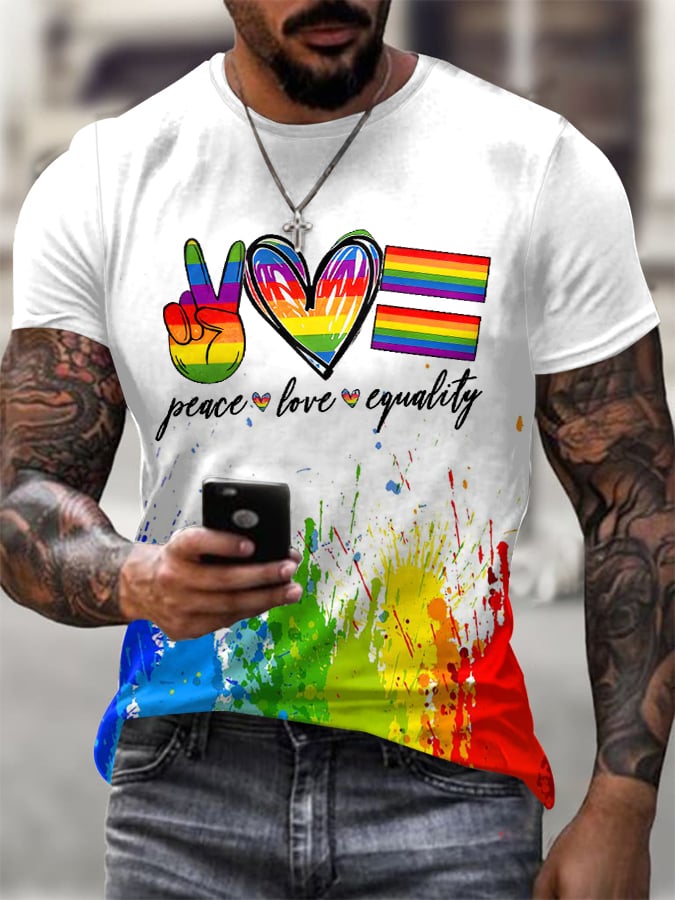 Men's Retro Peace Love Equality Print Short Sleeve T-shirt