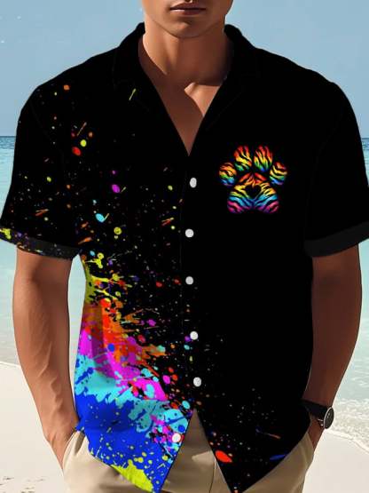 Men's Retro Rainbow Dog Paw LGBT Print Shirt