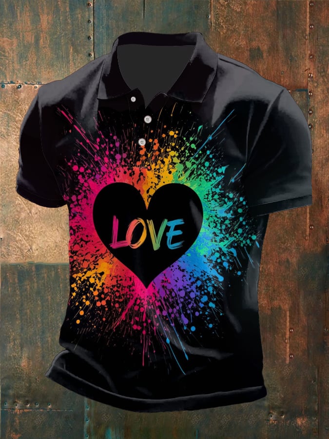 Men's Retro Rainbow Love LGBT Print Polo Shirt