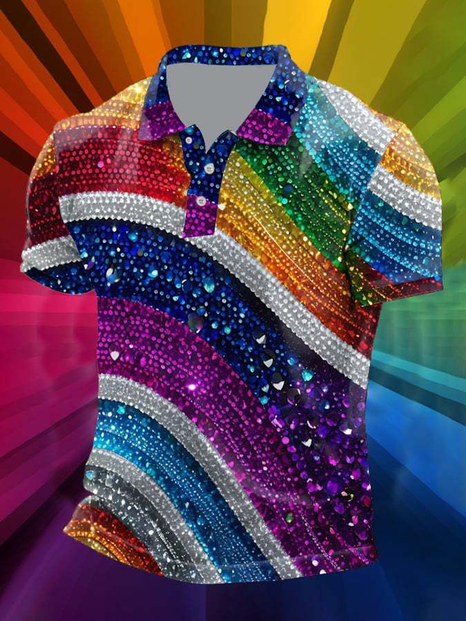 Men's Retro Rainbow Shiny Ripples LGBT Gay Print Polo Shirt