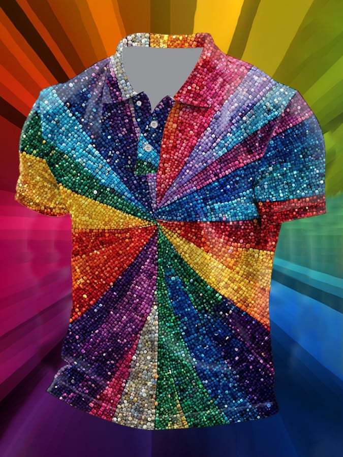 Men's Retro Rainbow Shiny Ripples LGBT Gay Print Polo Shirt