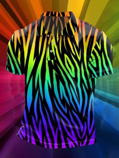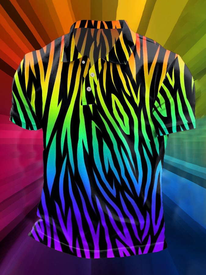 Men's Retro Rainbow Shiny Ripples LGBT Gay Print Polo Shirt