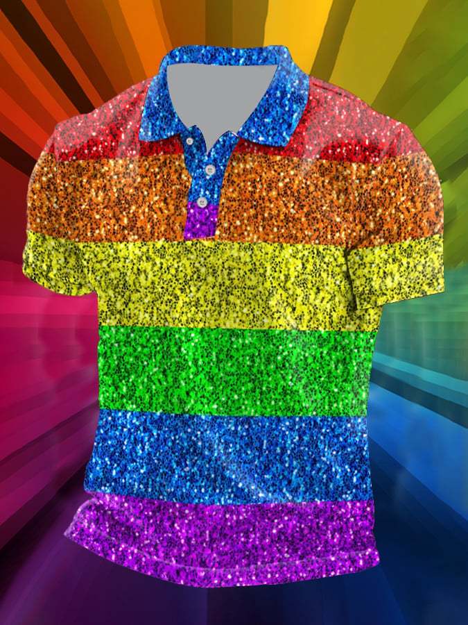 Men's Retro Rainbow Shiny Ripples LGBT Gay Print Polo Shirt