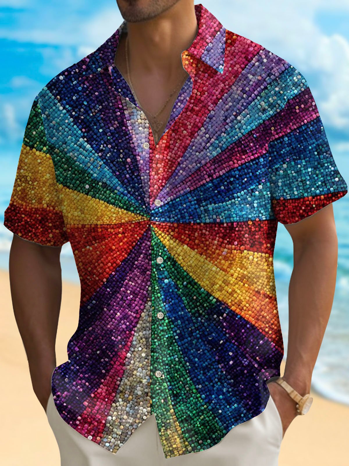Men's Retro Rainbow Shiny Ripples LGBT Gay Print Shirt