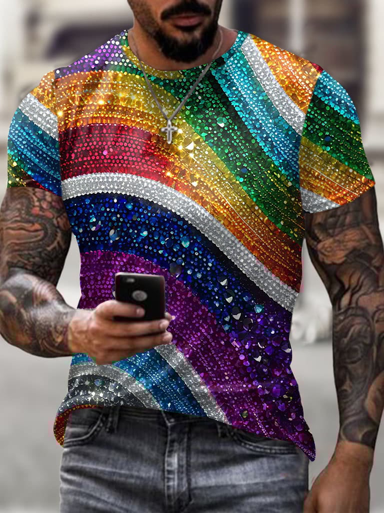 Men's Retro Rainbow Shiny Ripples LGBT Gay Print Short Sleeve T-shirt