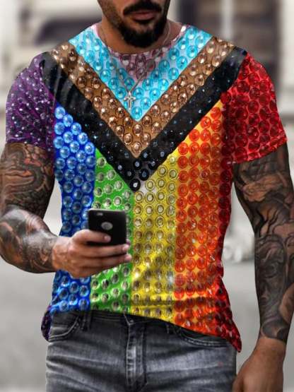 Men's Retro Rainbow Sparkle LGBT Print Short Sleeve T-shirt