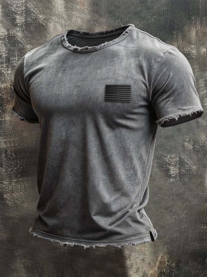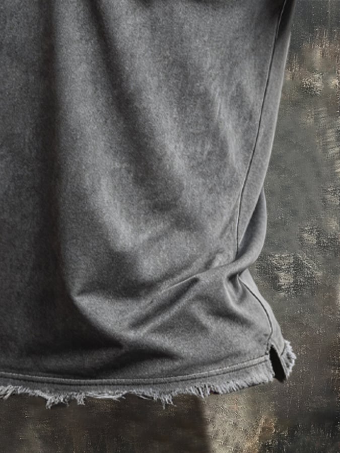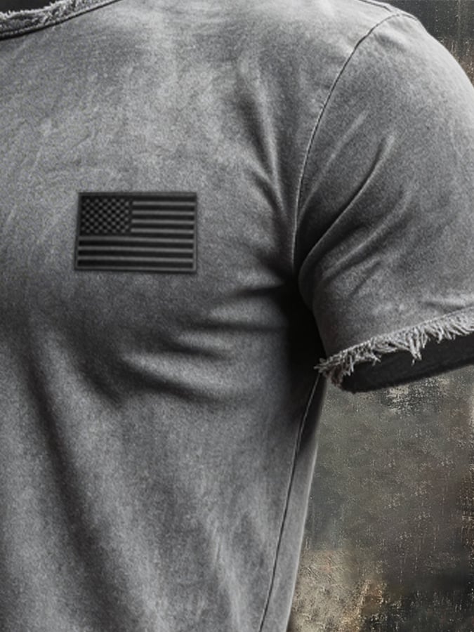 Men's Retro Style Loose Cuff 100% Cotton Washed and Faded T-Shirt