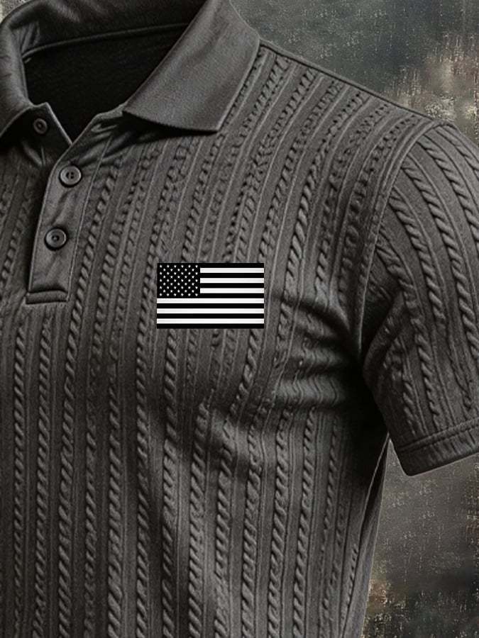 Men's Retro Textured Color-Blocked Polo Collar Short Sleeves