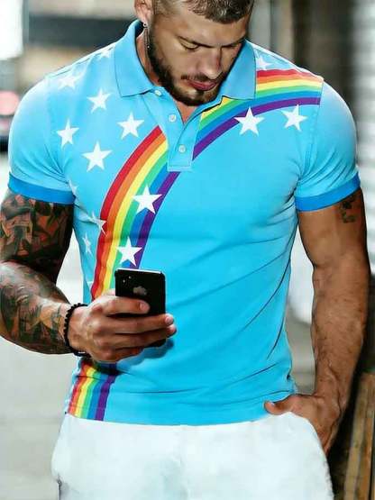 Men's Short-Sleeve Collar and Pride Month Rainbow Print Polo Shirt