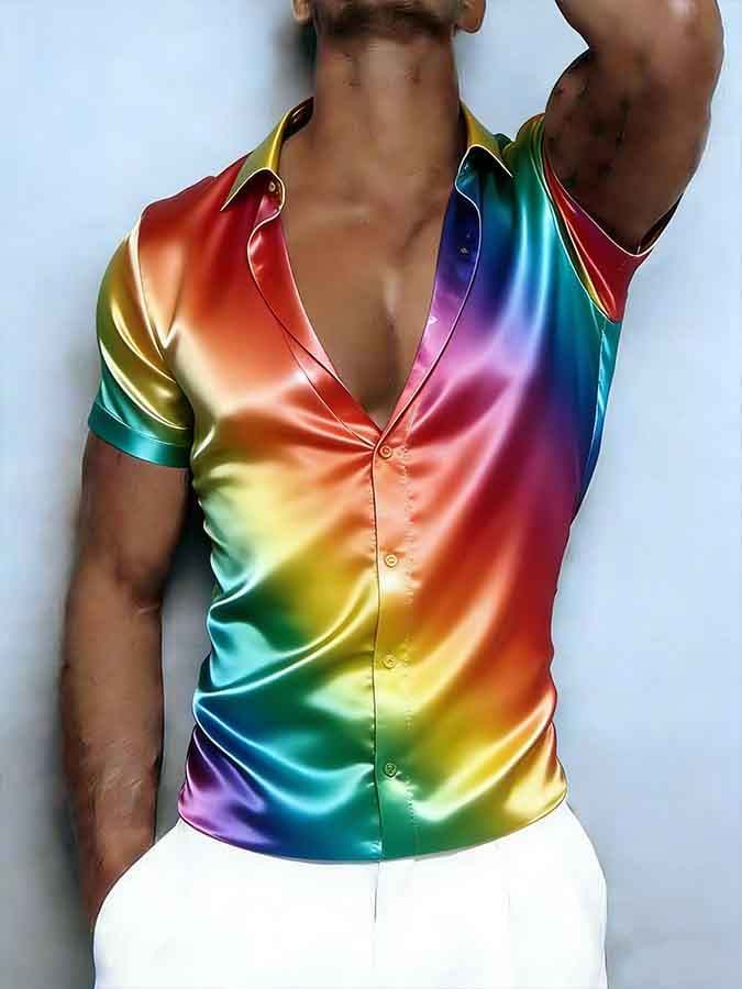 Men's Short-Sleeve Collared Pride Month Rainbow Print Shirt