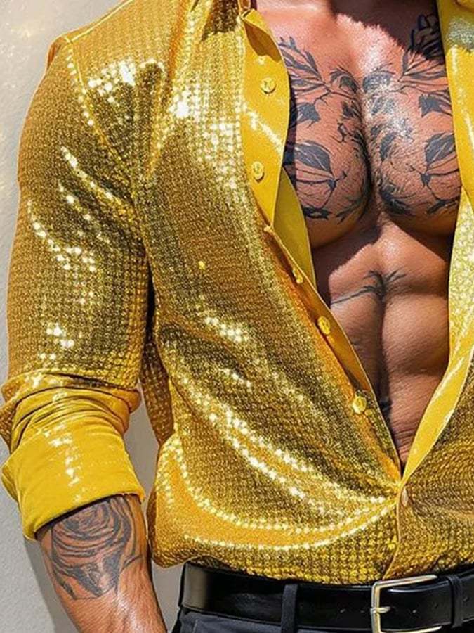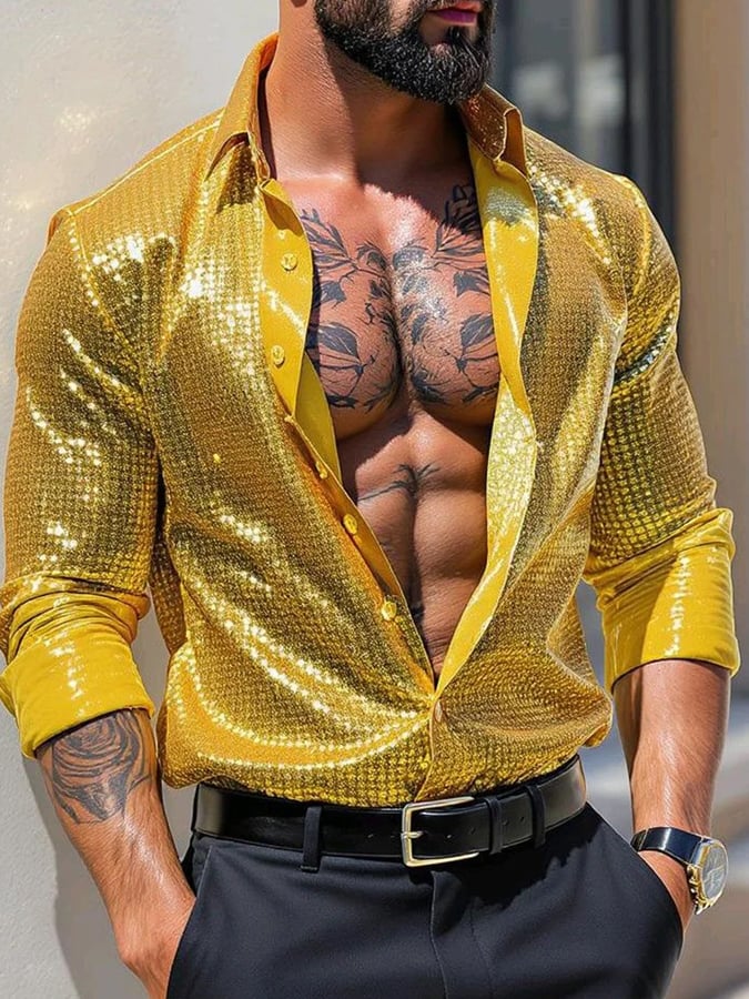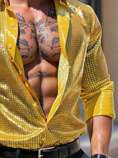 Men's Stylish, Shimmering, Sheer Long-Sleeved Shirt
