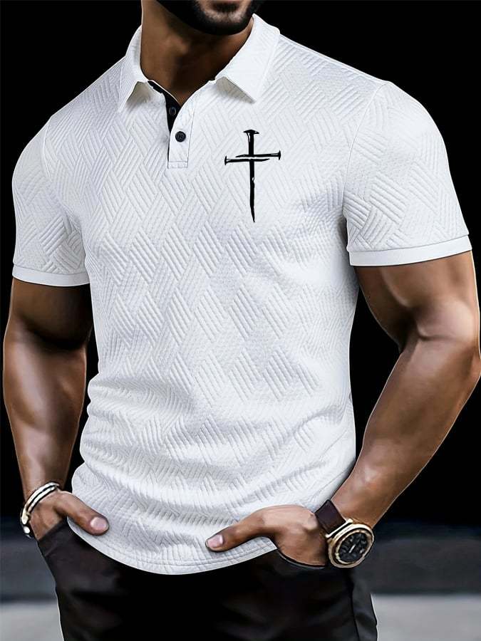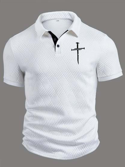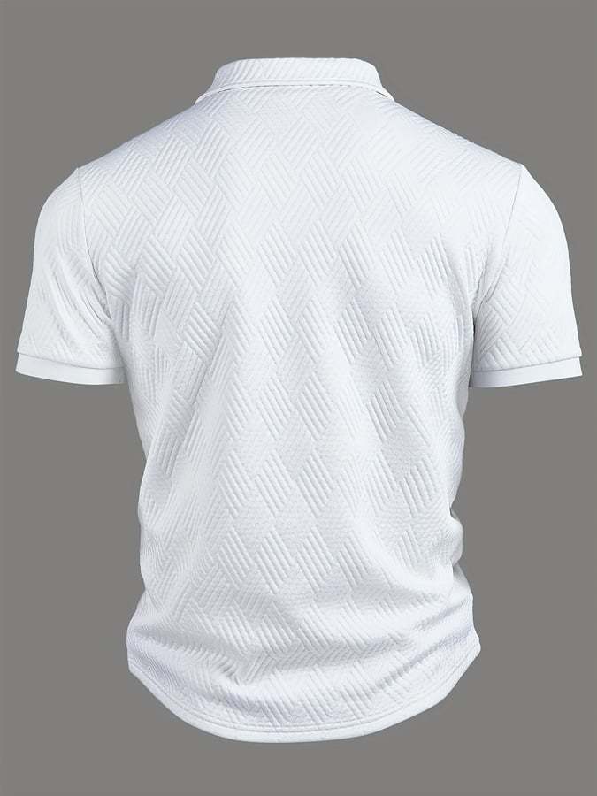 Men's Textured Jacquard Fabric Patchwork Contrast Color Cuff Rib Polo Shirt