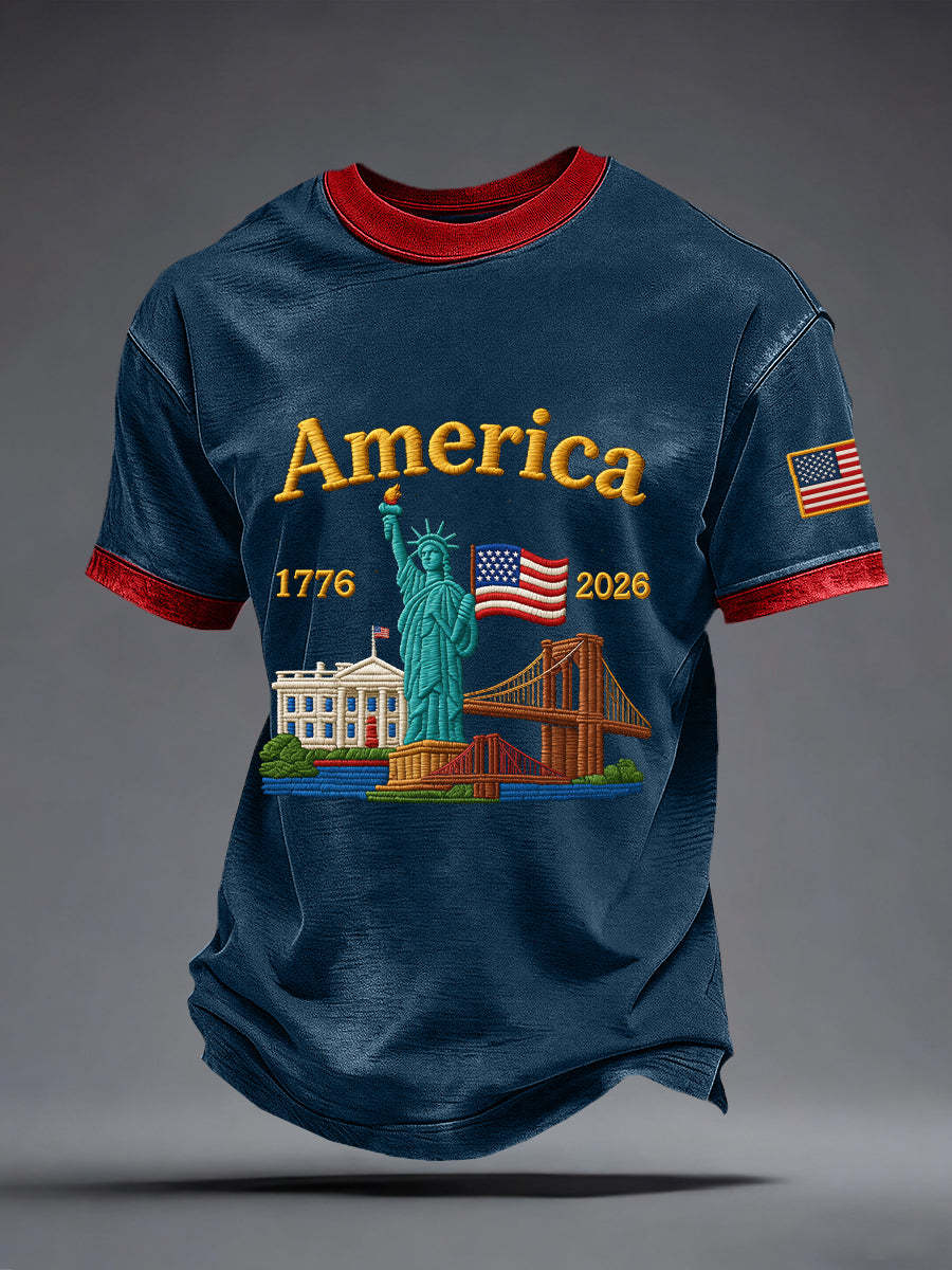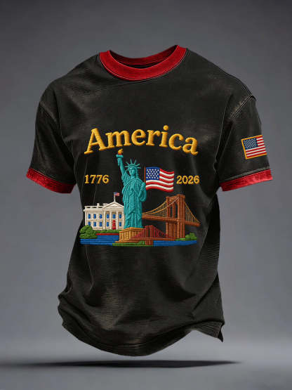 Men's USA 1776-2026 Print Vintage T-Shirt