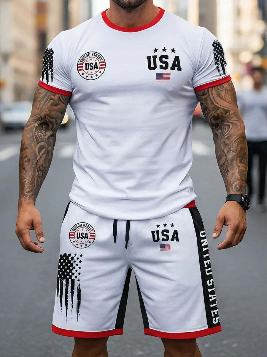 Men's USA Flag T-Shirt and Shorts Sets