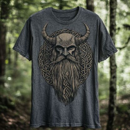 Men's Viking Celtic Knot Embroidery Vintage Print Crew Neck T-Shirt