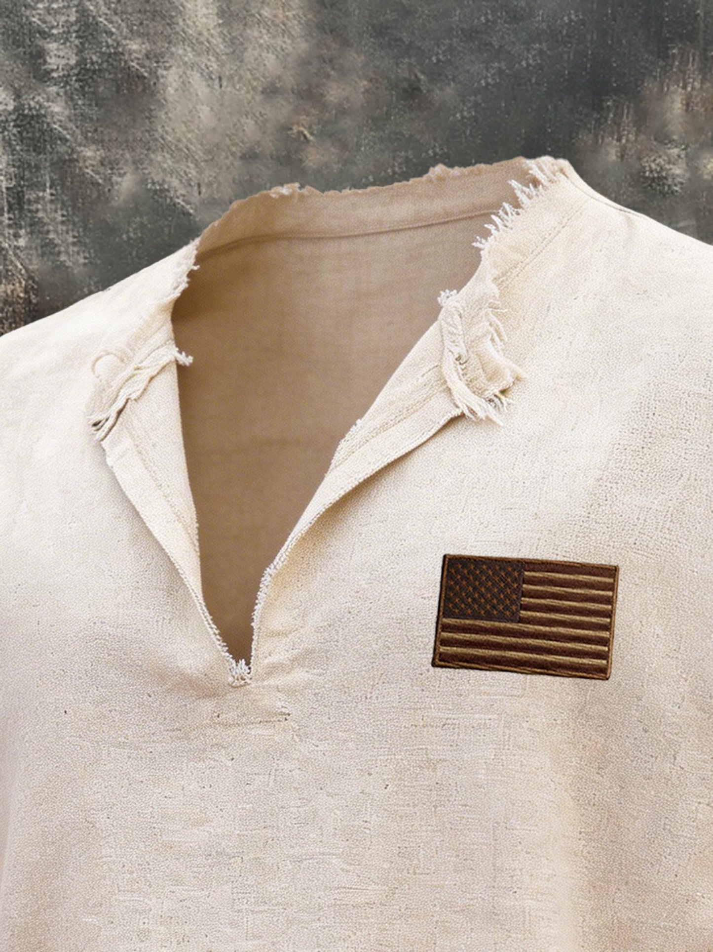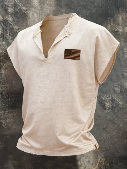 Men's Vintage Cotton-Linen Patriotic Frayed-Hem Sleeveless T-Shirt