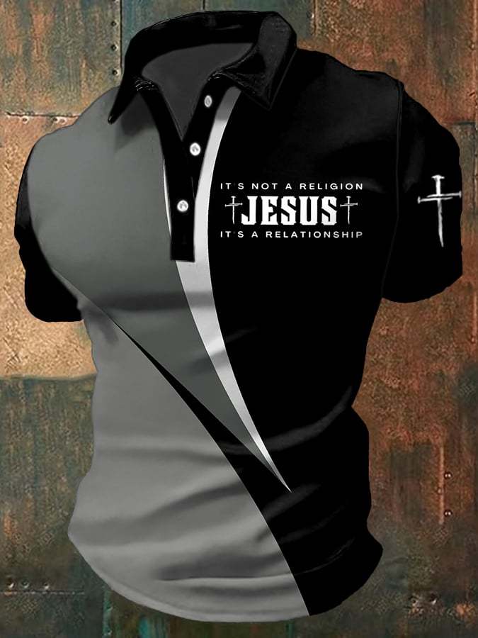 Men'S Vintage Cross Sunset Print Casual Polo Shirt