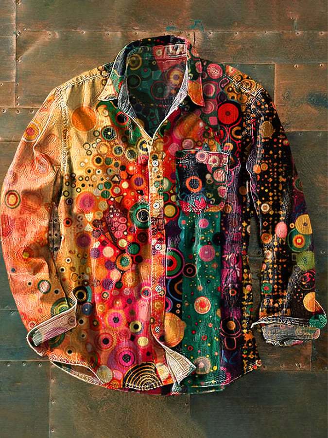 Men's Vintage Psychedelic Hippie Print Casual Long Sleeve Shirt