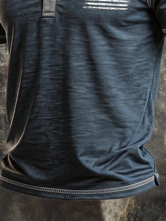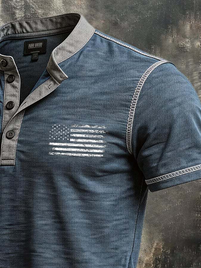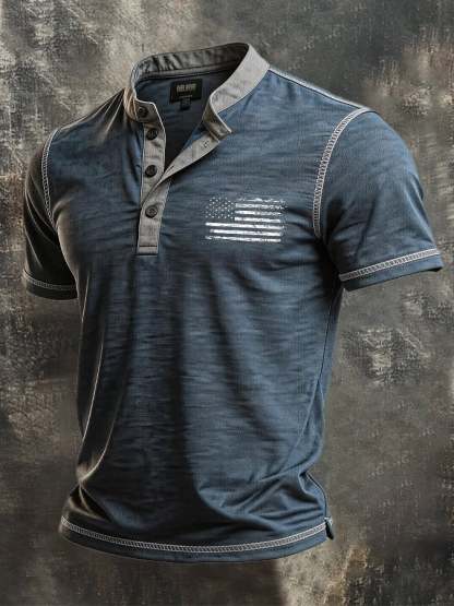 Men's Vintage Slub Cotton 100% Pure Cotton Stretch Short-Sleeve Henley T-Shirt