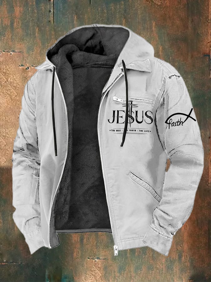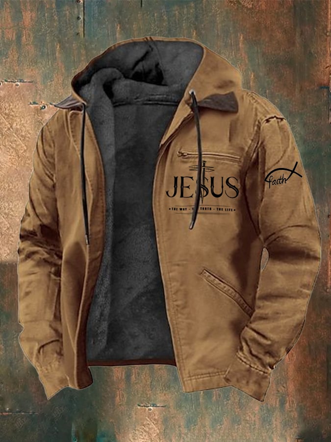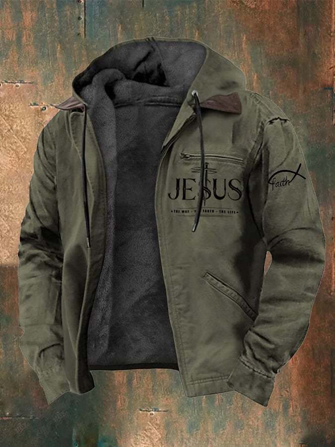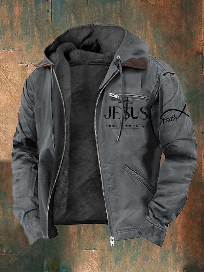 Men's Vintage Velvet Faith Print Zipper Jacket